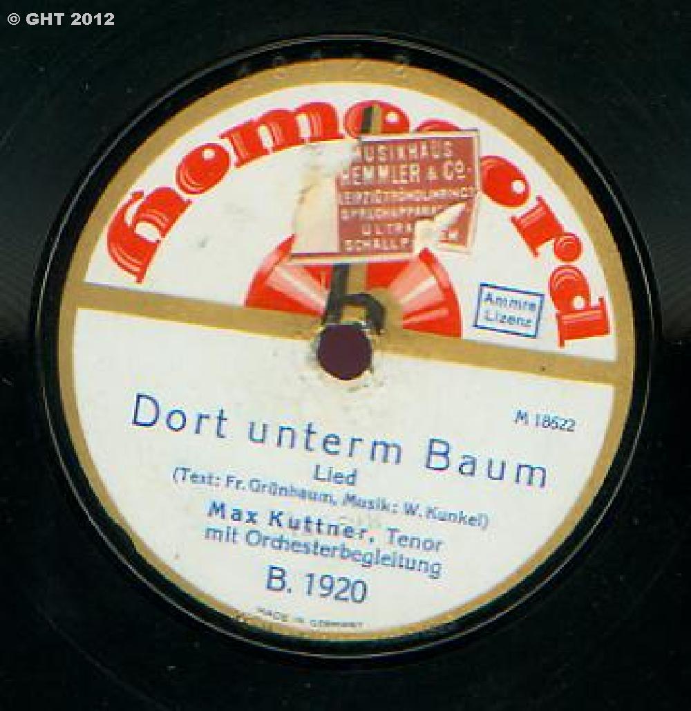 Kuttner, Max (Performer); Homocord-Orchester; Max Kuttner (Gesang); Homocord (Record Label).