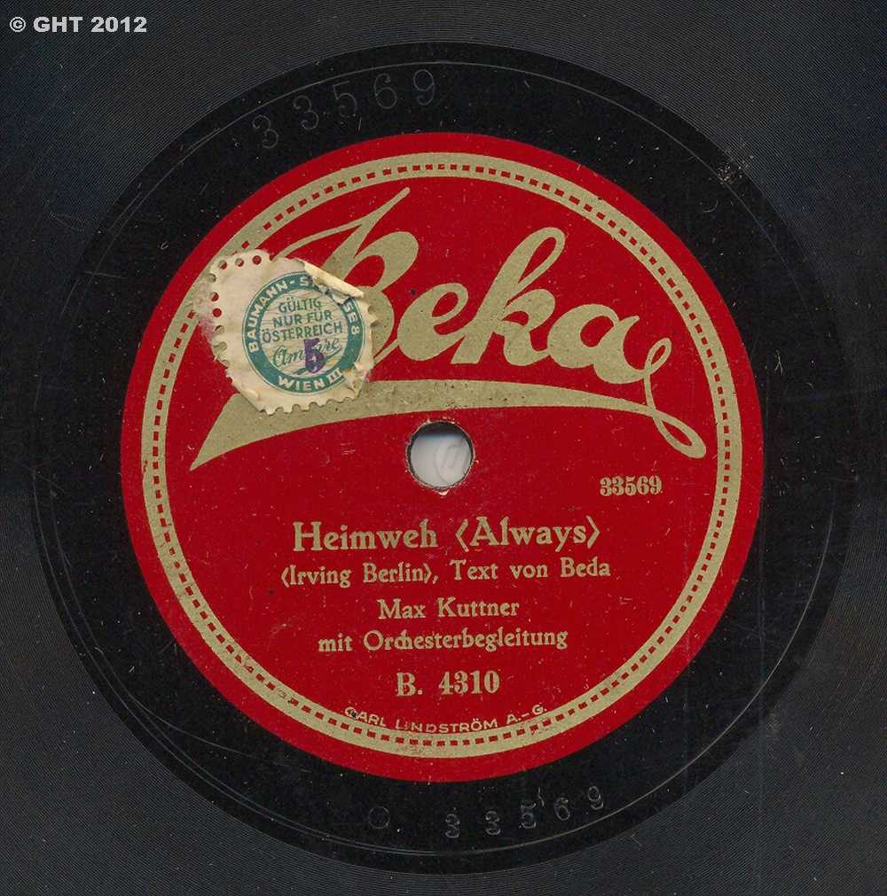 Kuttner, Max (Performer); Orchesterbegleitung; Max Kuttner (Gesang); Beda (Lyricist); Beka (Record Label).